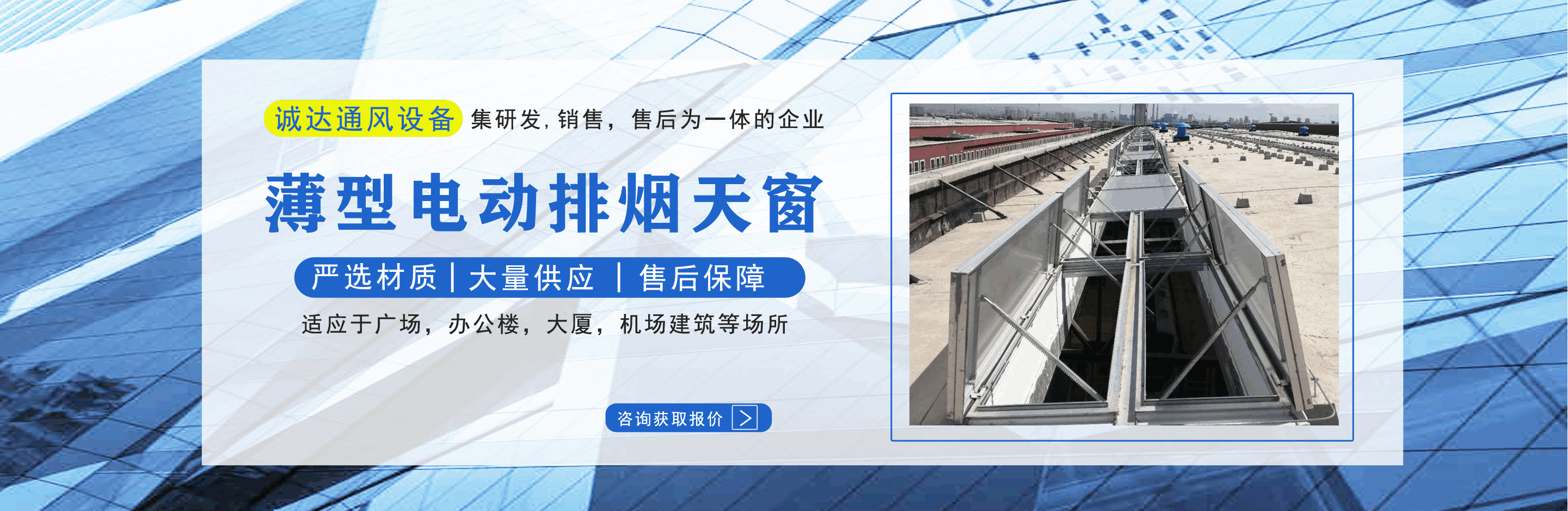 山東誠達通風設備有限公司主營排煙天窗,電動排煙天窗,消防天窗,一字型消防電動排煙天窗,薄型電動排煙天窗等產品,質量可靠,歡迎前來咨詢訂購!  公司憑借雄厚的實力,豐富齊全的規格品種,完善的質量保證,合理的價格,優質的服務,不斷地受到新老用戶及業內人士的肯定和信任,我們本著及用戶之所及,想用戶之所想的服務宗旨不斷地拼搏,進取!  公司真誠的歡迎社會各界朋友蒞臨本公司參觀考察,同時也非常感謝所有新老客戶的信賴和支持。...